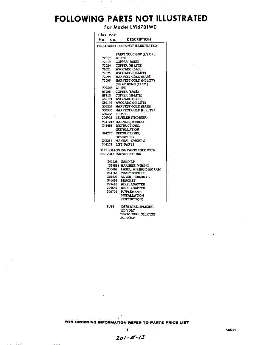 Parts for Whirlpool LVI6701W0: 03 - Section Parts
