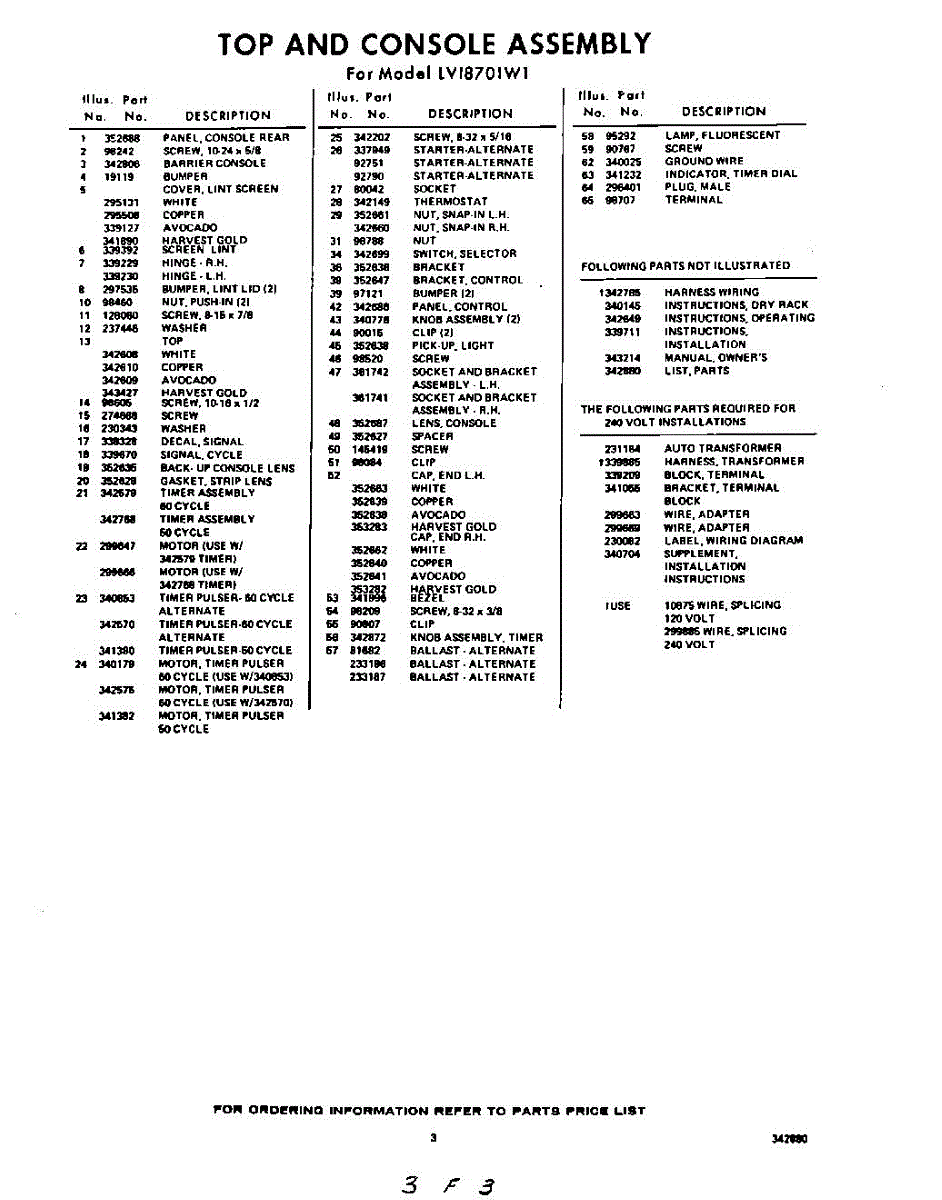 Parts for Whirlpool LVI8701W1: 03 - Section Parts