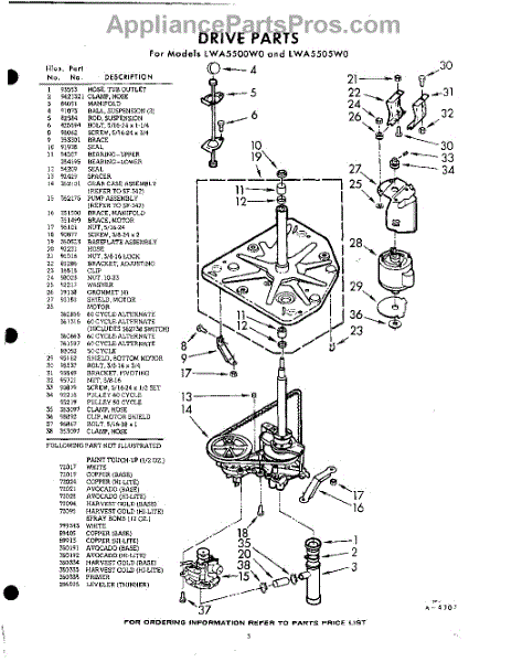 Parts for Whirlpool LWA5505W0: 03 - Section Parts