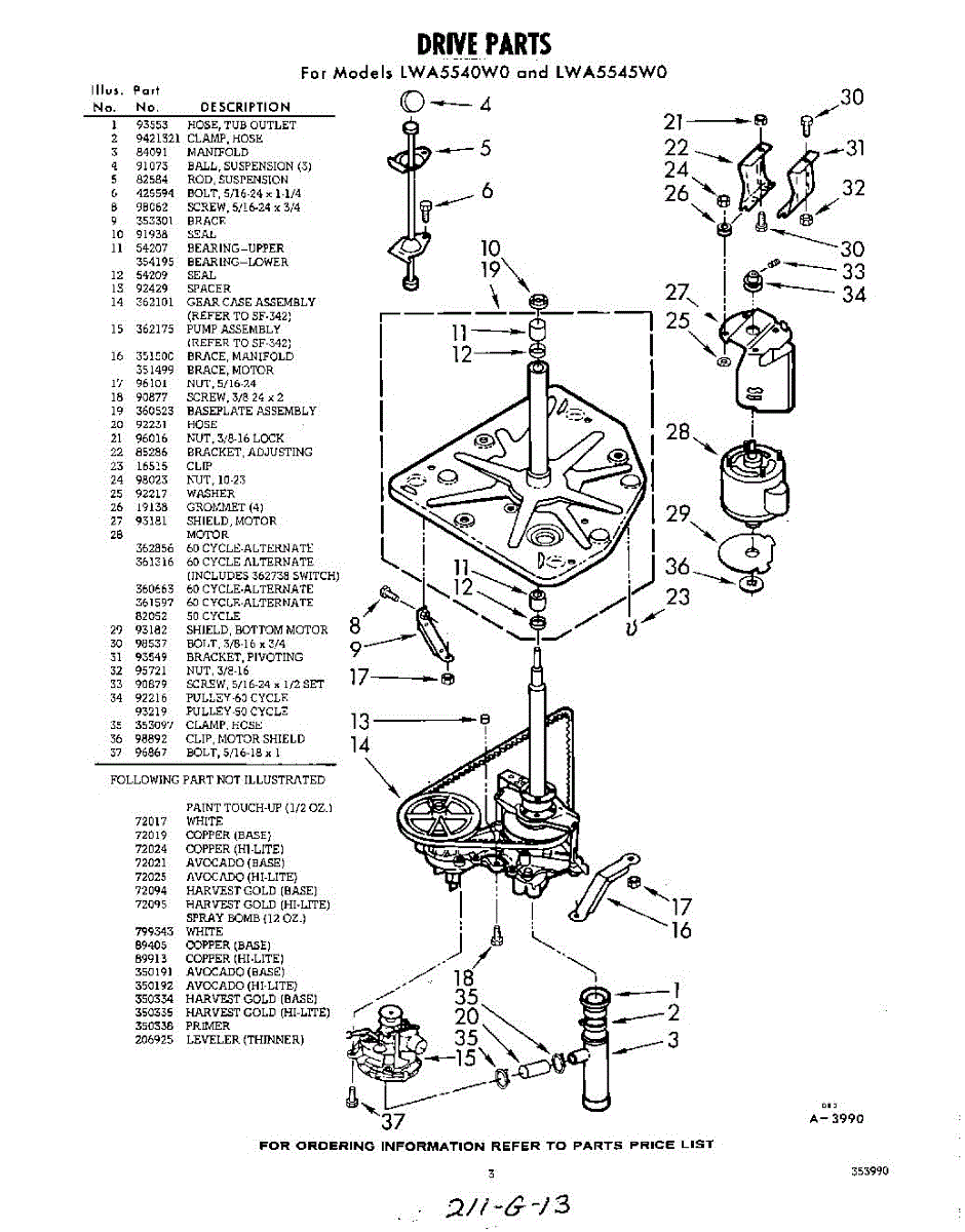Parts for Whirlpool LWA5540W0: 03 - Section Parts