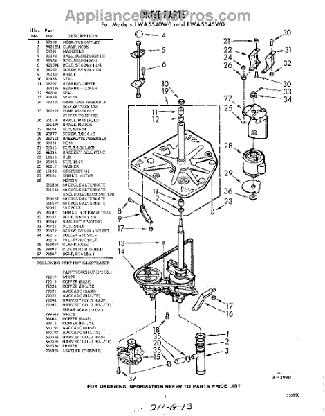 Parts for Whirlpool LWA5545W0: 03 - Section Parts