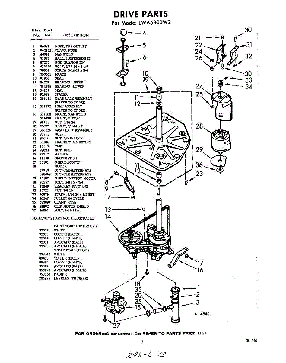 Parts for Whirlpool LWA5800W2: 03 - Section Parts