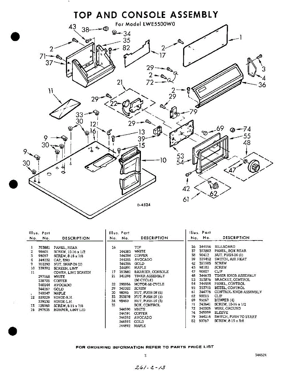 Parts for Whirlpool LWE5500W0: 03 - Section Parts