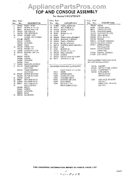 Parts for Whirlpool LWE5700W0: 03 - Section Parts