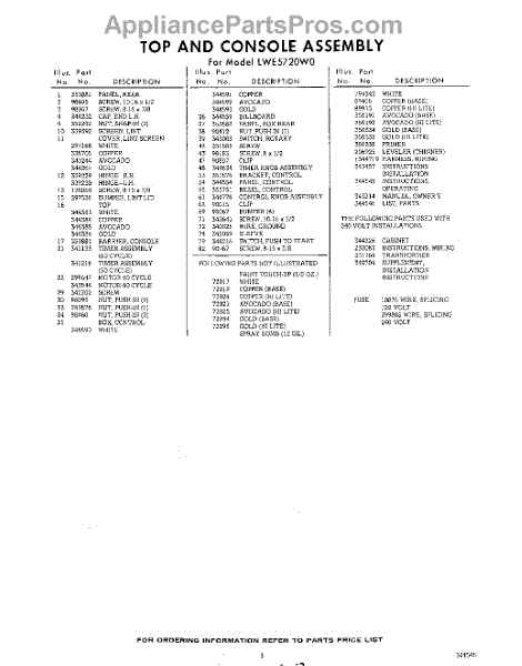 Parts for Whirlpool LWE5720W0: 03 - Section Parts