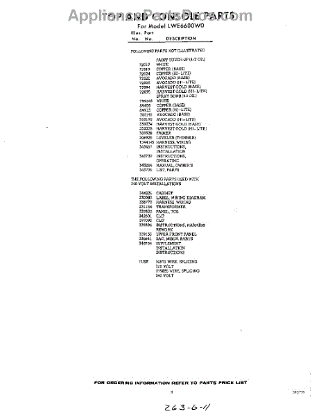 Parts for LWE6600W0