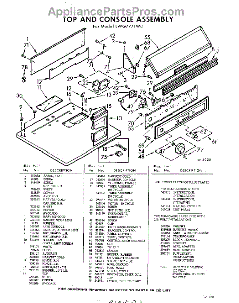 Parts for Whirlpool LWG7771W0: 03 - Section Parts