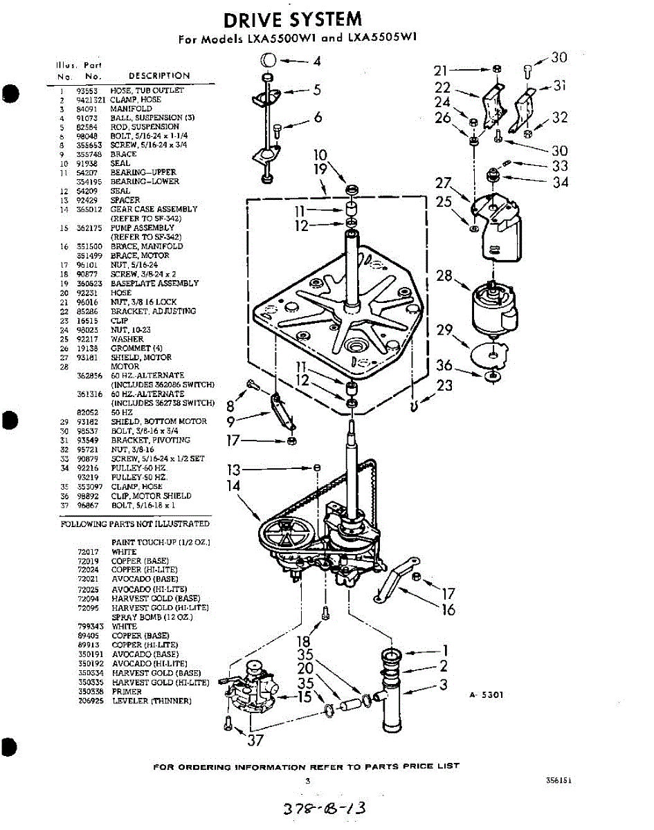 Parts for Whirlpool LXA5505W1: 03 - Section Parts