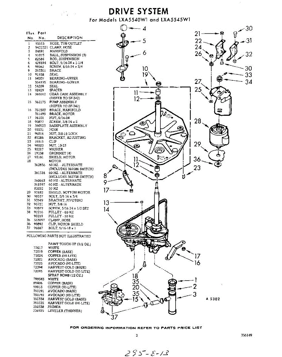 Parts for Whirlpool LXA5540W1: 03 - Section Parts