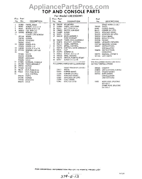Parts for Whirlpool LXE5500W1: 03 - Section Parts