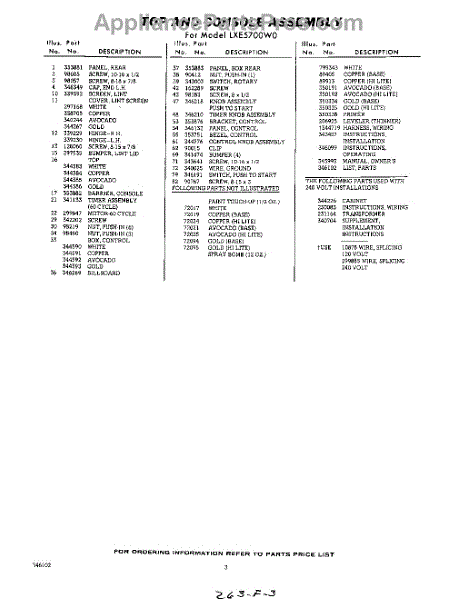 Parts for Whirlpool LXE5700W0: 03 - Section Parts