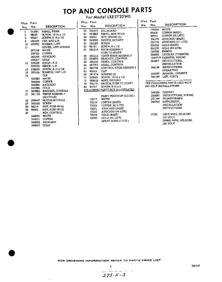 Parts for Whirlpool LXE5720W0: 03 - Section Parts