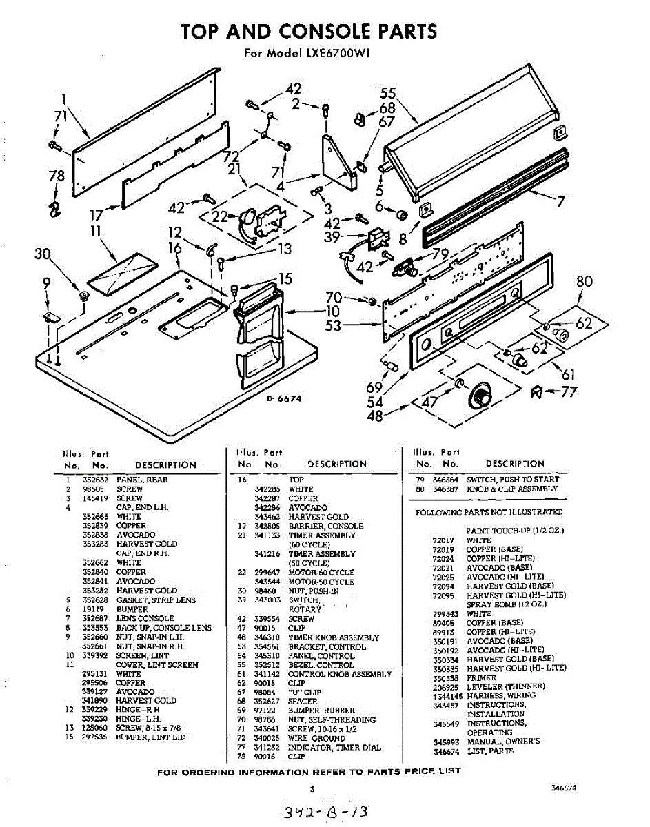 Parts for Whirlpool LXE6700W1: 03 - Section Parts