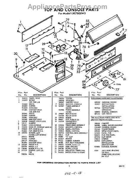 Parts for Whirlpool LXE7800W3: 03 - Section Parts