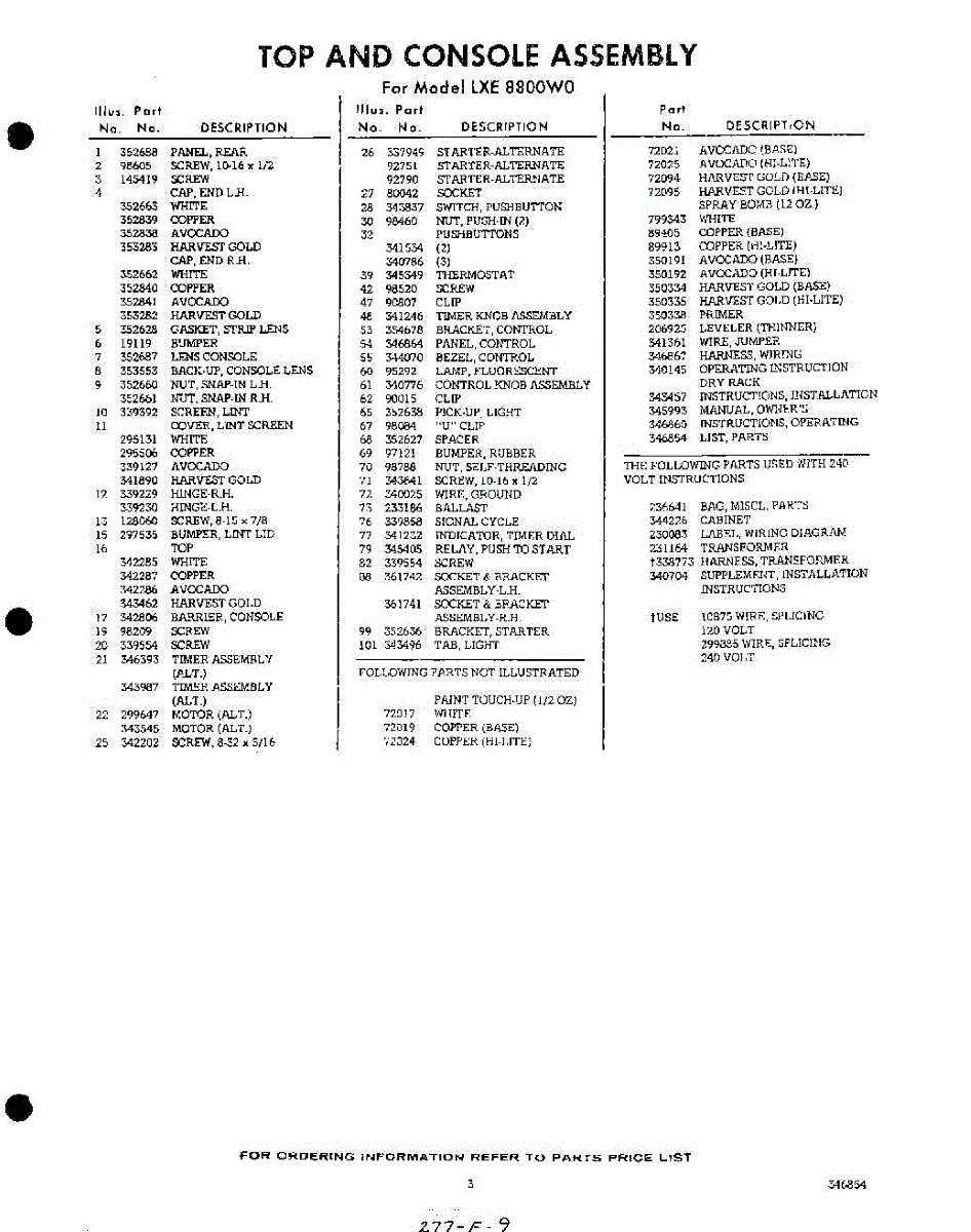 Parts for Whirlpool LXE8800W0: 03 - Section Parts