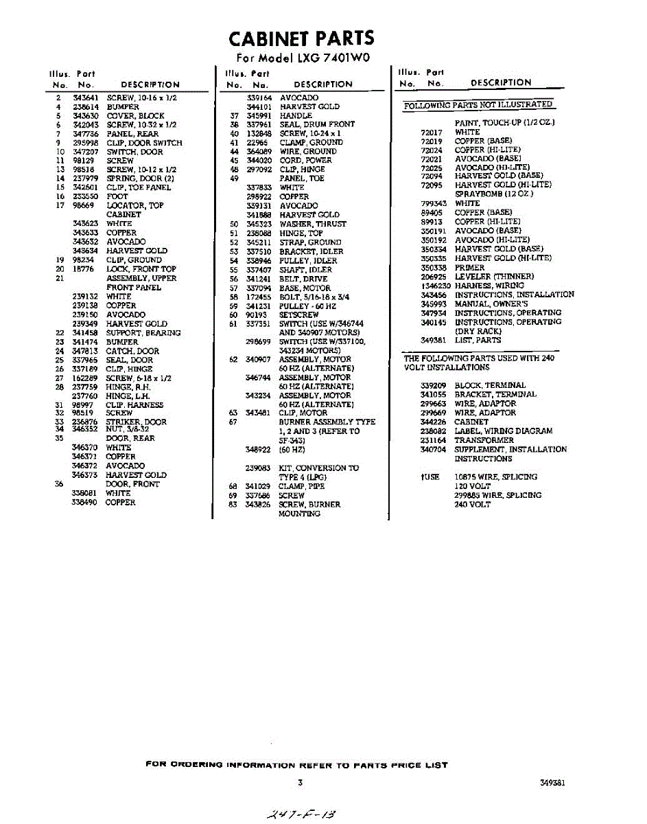 Parts for Whirlpool LXG7401W0: 03 - Section Parts
