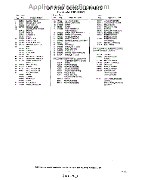 Parts for Whirlpool LXI5501W1: 03 - Section Parts
