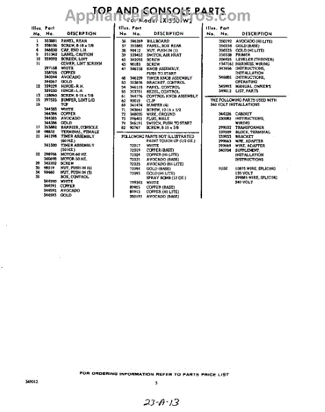Parts for Whirlpool LXI5501W2: 03 - Section Parts