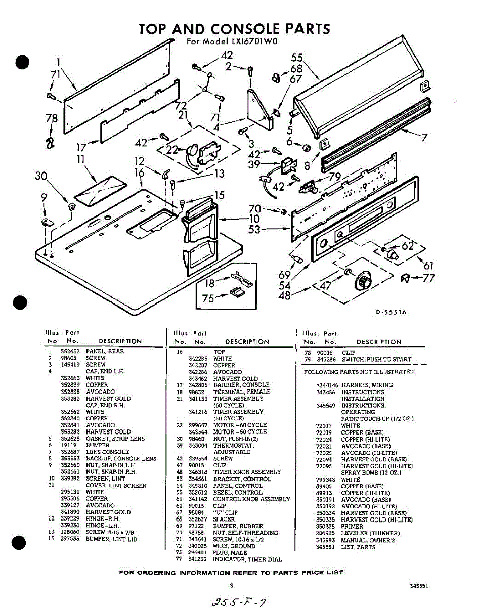Parts for Whirlpool LXI6701W0: 03 - Section Parts