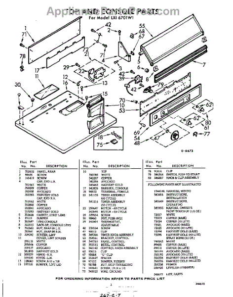Parts for Whirlpool LXI6701W1: 03 - Section Parts
