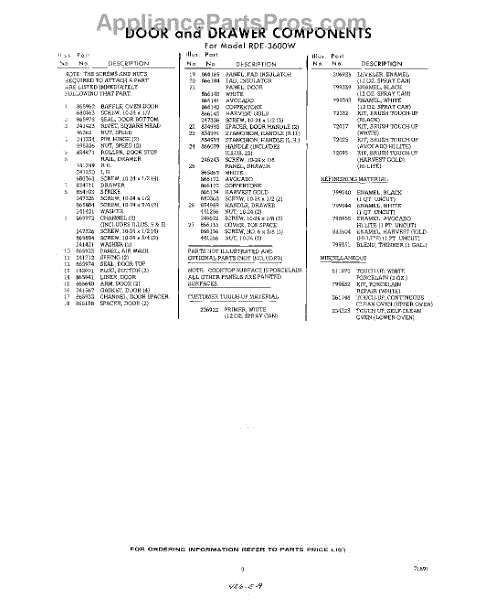 Parts for Whirlpool RDE3600W: 09 - Section Parts