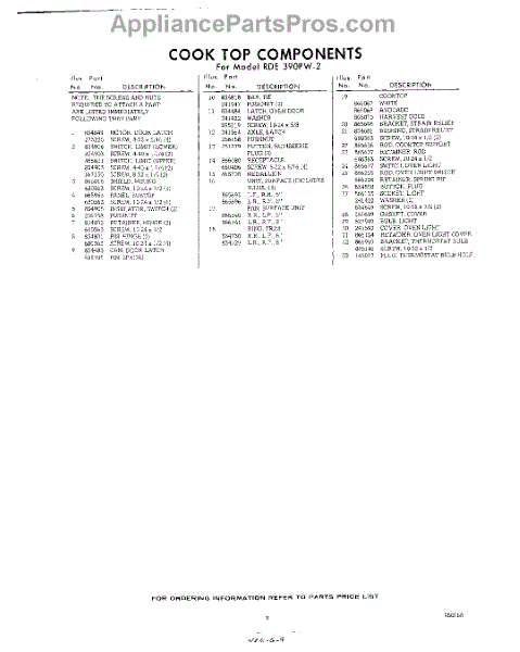 Parts for RDE390PW2
