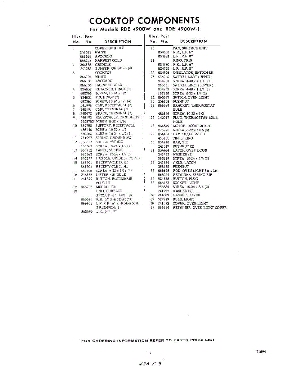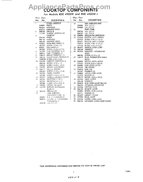 Parts for Whirlpool RDE4900W: 09 - Section Parts