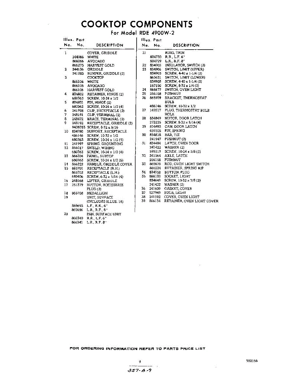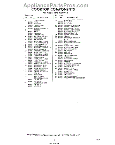 Parts for Whirlpool RDE4900W2: 09 - Section Parts