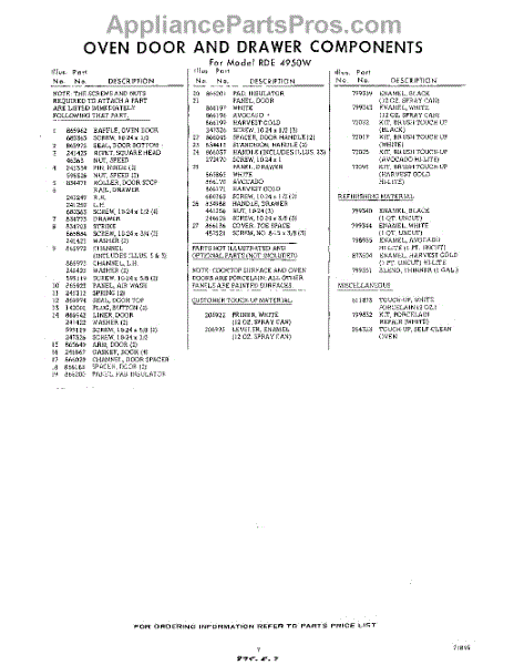 Parts for RDE4950W