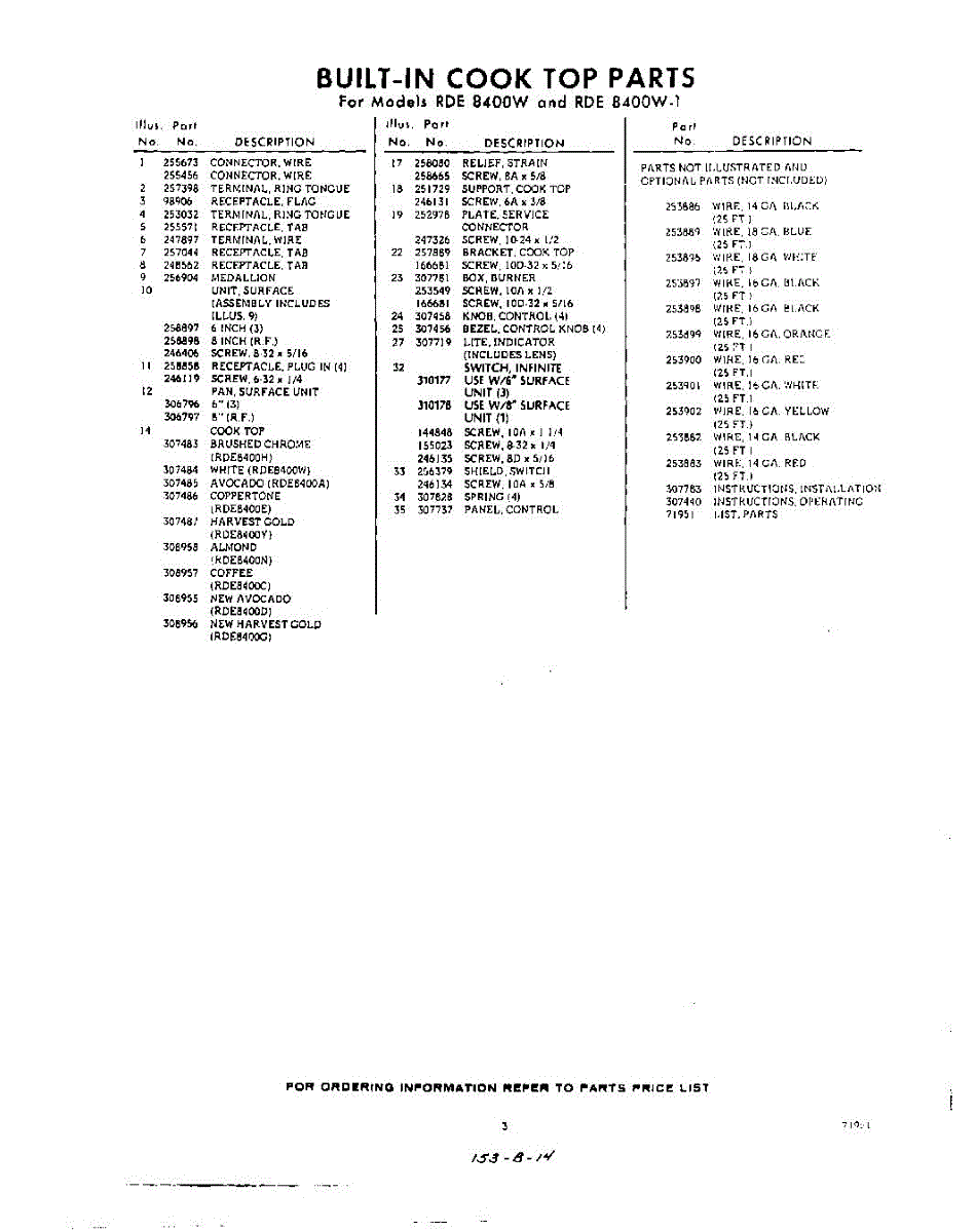 Parts for RDE8400W