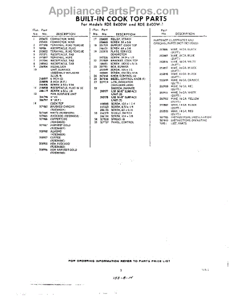 Parts for RDE8400W1