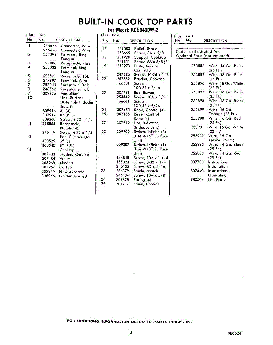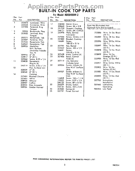 Parts for Whirlpool RDE8400W2: 03 - Section Parts