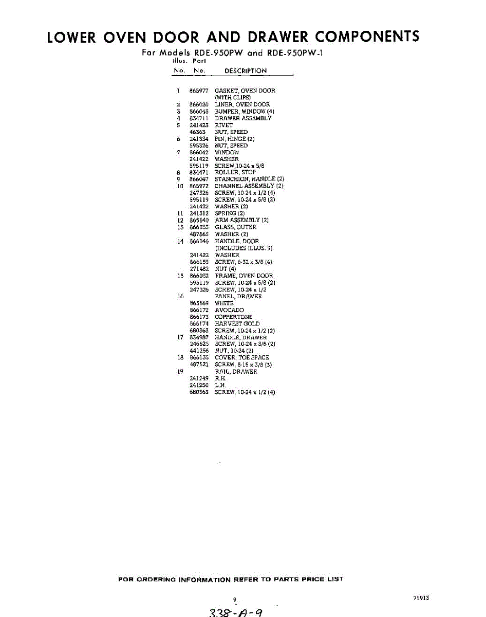 Parts for RDE950PW1