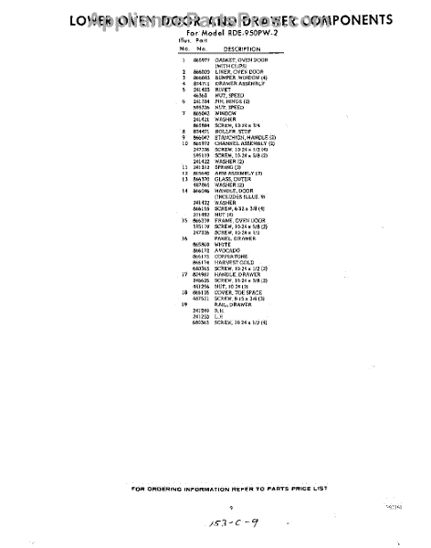 Parts for RDE950PW2