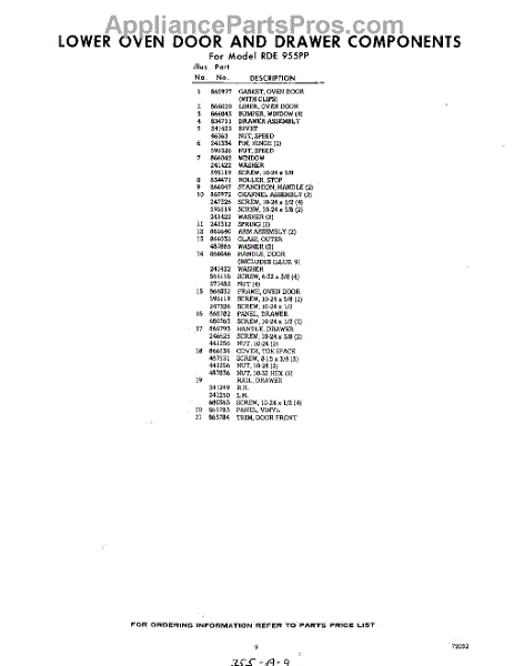 Parts for Whirlpool RDE955PP: 09 - Section Parts