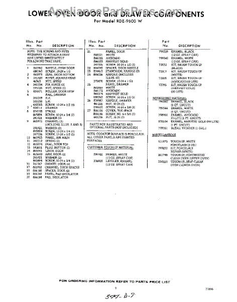 Parts for Whirlpool RDE9600W: 09 - Section Parts