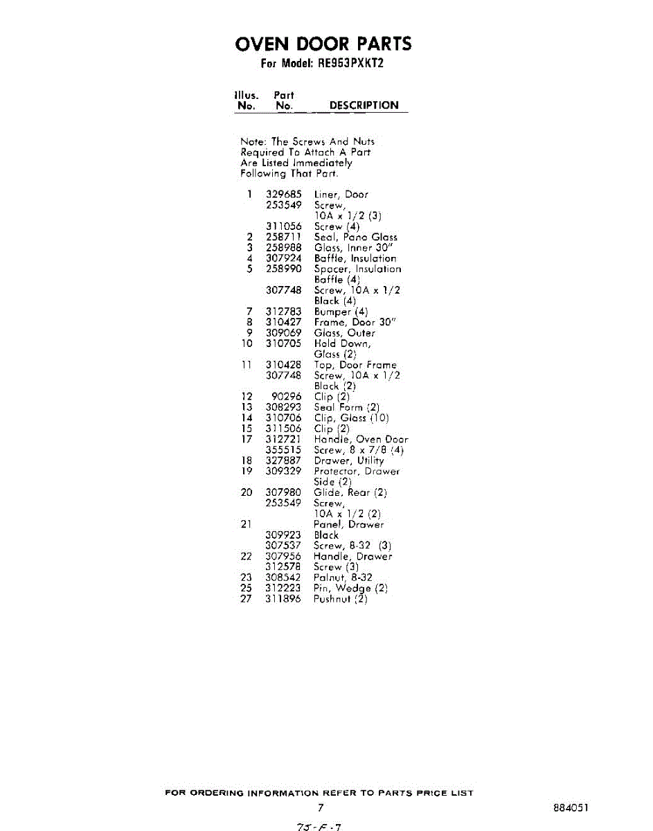 Parts for Whirlpool RE953PXKT2: 07 - Section Parts