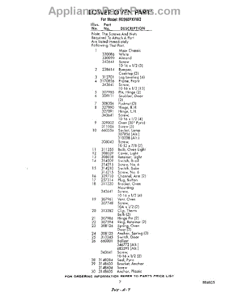 Parts for Whirlpool RE960PXVN2: 07 - Section Parts