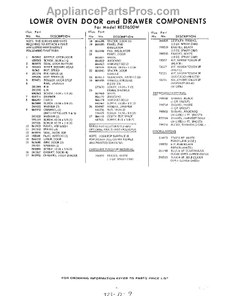 Parts for Whirlpool REE9600W: 09 - Section Parts