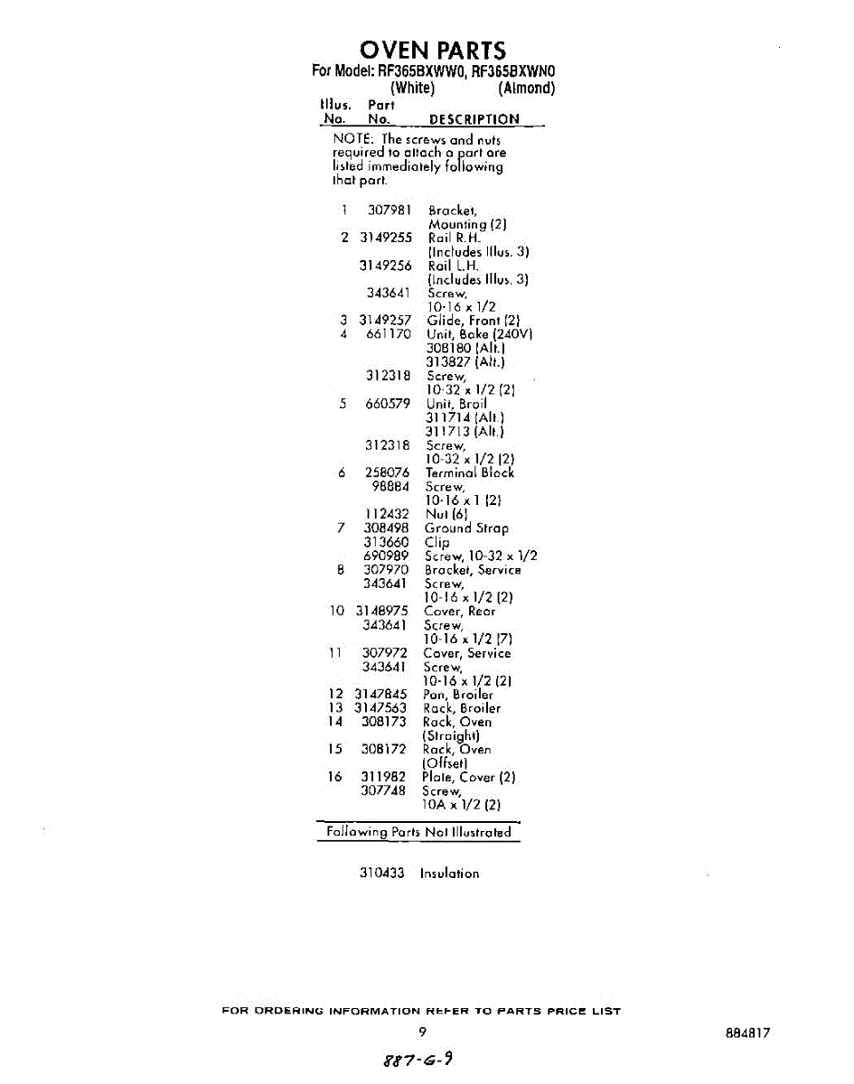 Parts for Whirlpool RF365BXWW0: 09 - Section Parts
