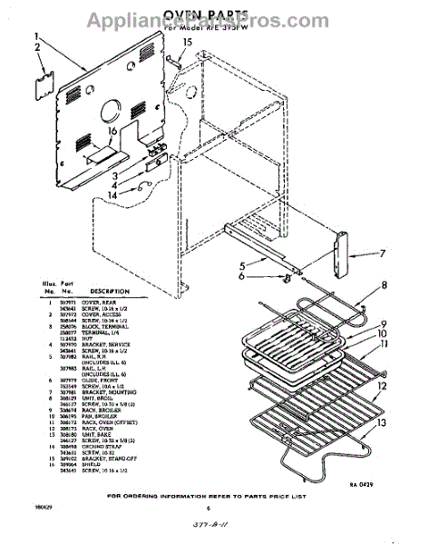 Parts for RFE395PW