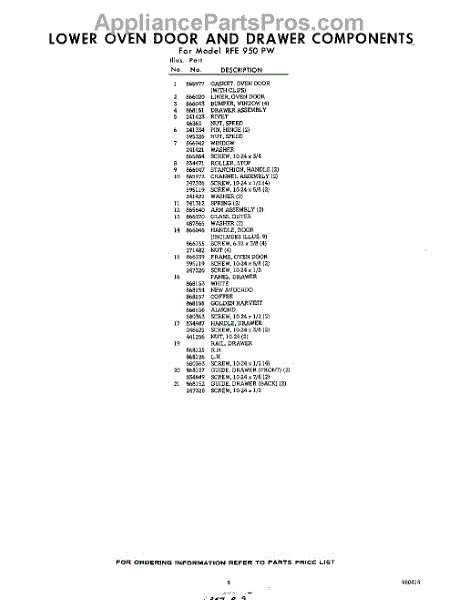Parts for Whirlpool RFE950PW: 09 - Section Parts