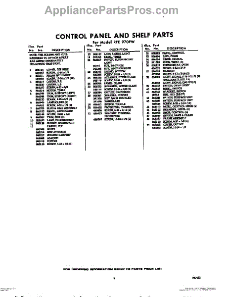 Parts for RFE970PW