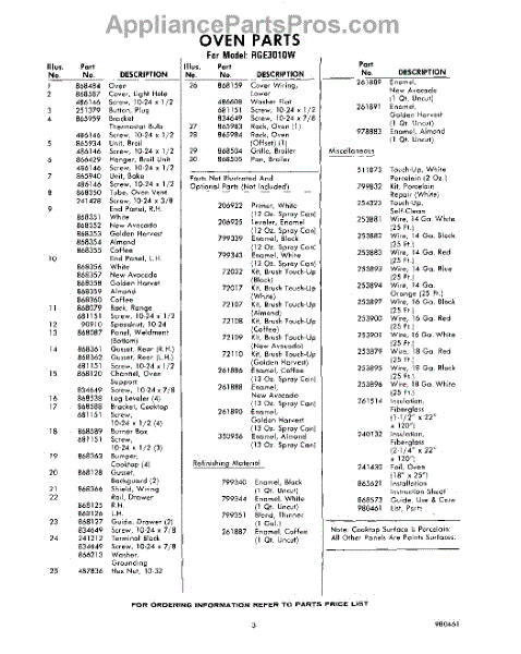Parts for RGE3010W