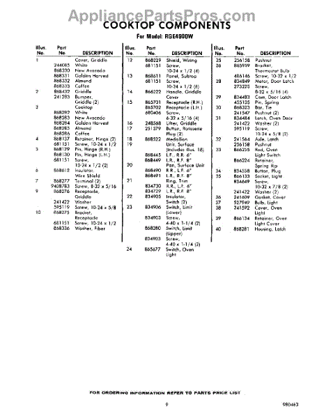 Parts for Whirlpool RGE4900W: 09 - Section Parts
