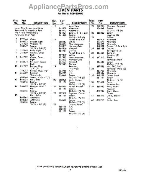 Parts for RGE4900W2