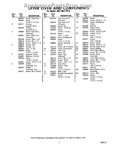 Parts for Whirlpool RGE963PP0: 11 - Section Parts
