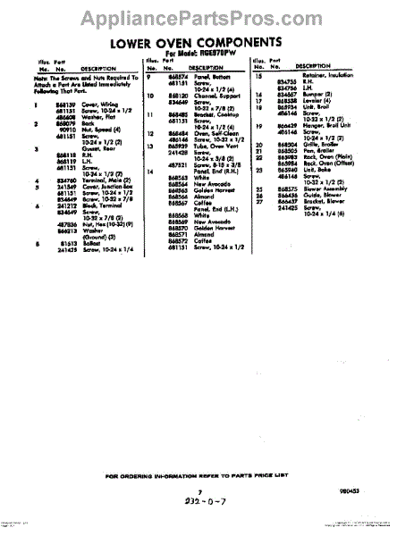Parts for RGE970PW