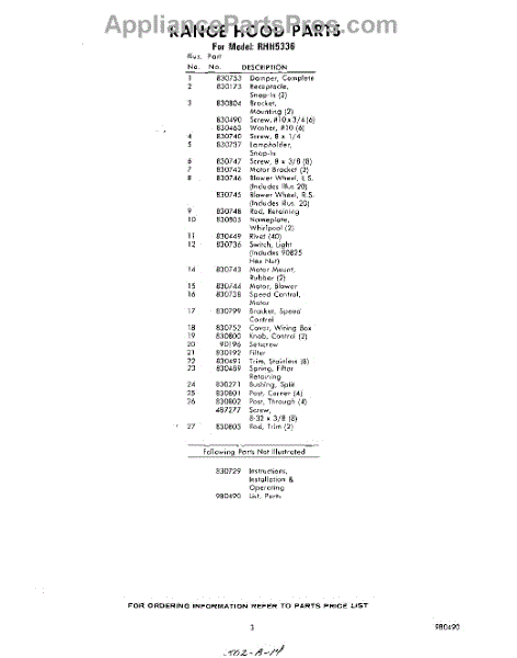 Parts for Whirlpool RHH5336: 03 - Section Parts