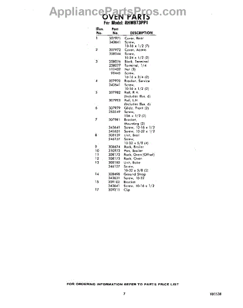 Parts for Whirlpool RHM973PP1: 07 - Section Parts